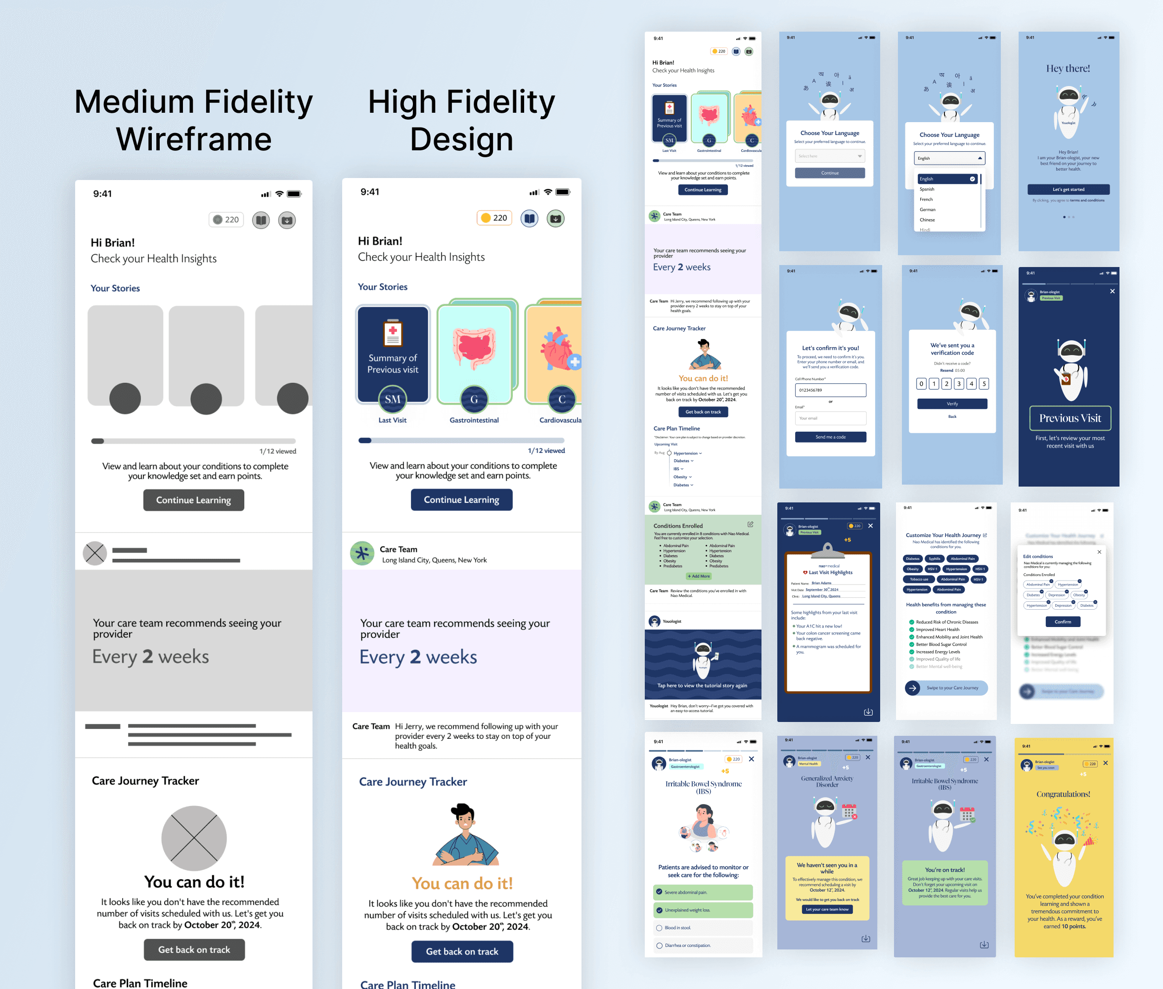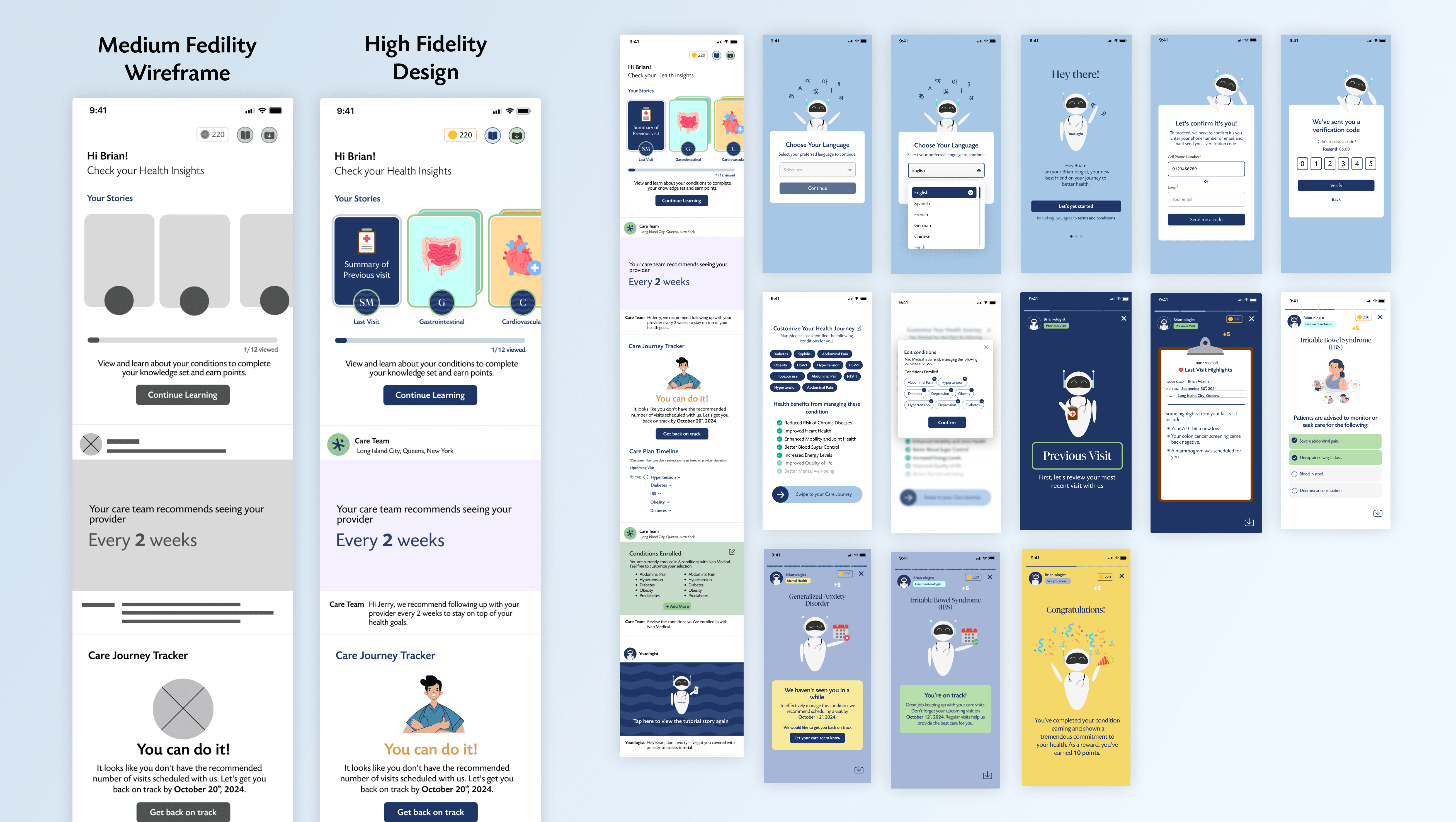 Language Selector: Added to the onboarding screen, improving accessibility for non-English-speaking patients.